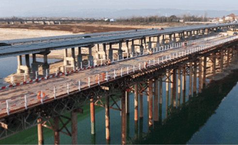 108国道洋县湑水桥改造项目钢栈桥及便道施工完成