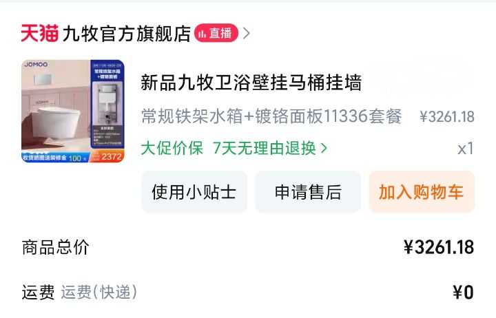 全新九牧壁挂马桶